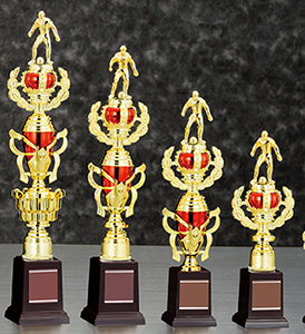 樹脂製のトロフィーは比較的お求めやすい価格帯で、各競技の人形を取り付けて販売します。¥5,000程度から4本柱の大きなトロフィーがお求めいただけます。大会などを盛り上げる効果は絶大です。